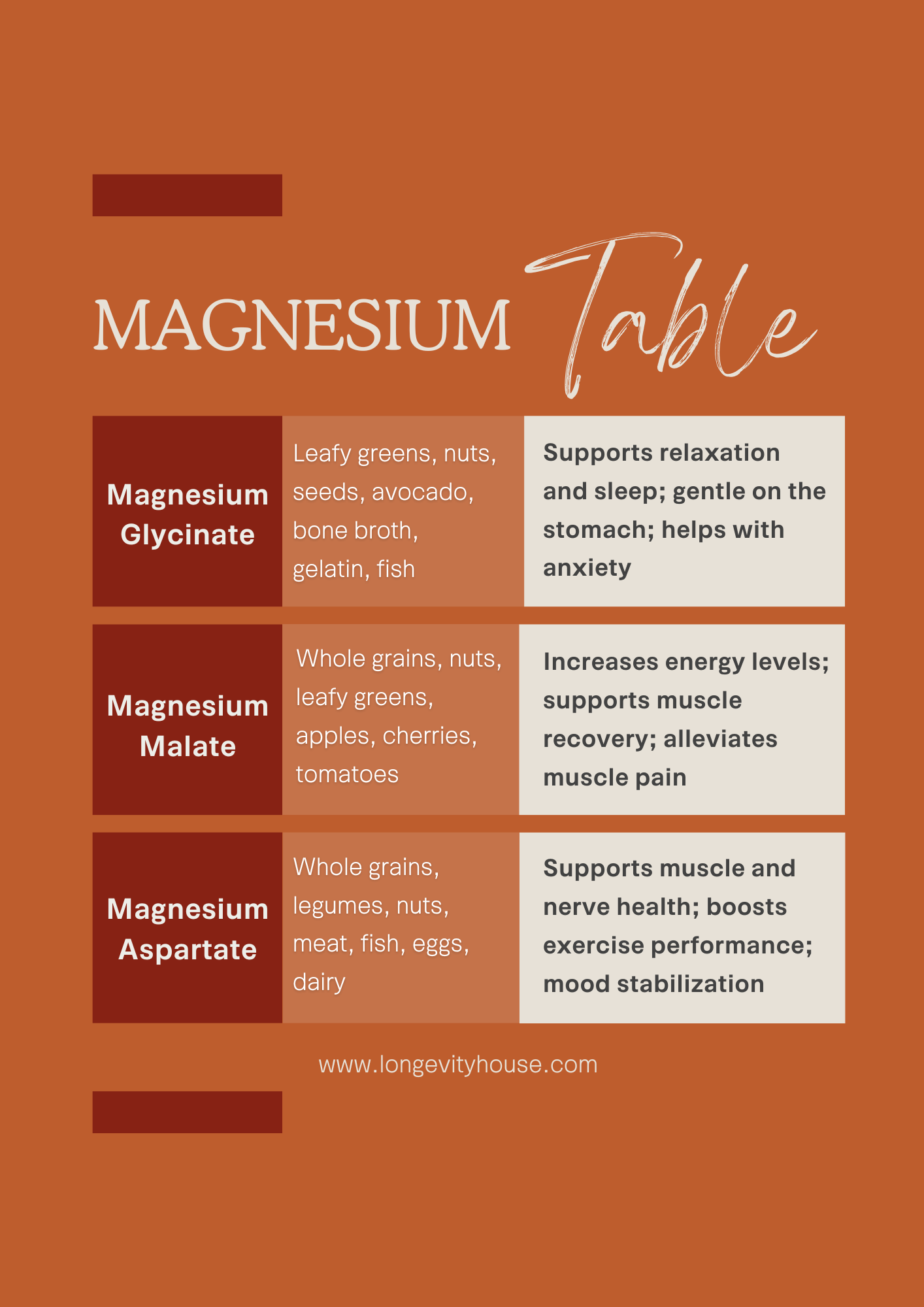- For Better Sleep and Relaxation: Try magnesium glycinate. It’s gentle, calming, and excellent for stress management.